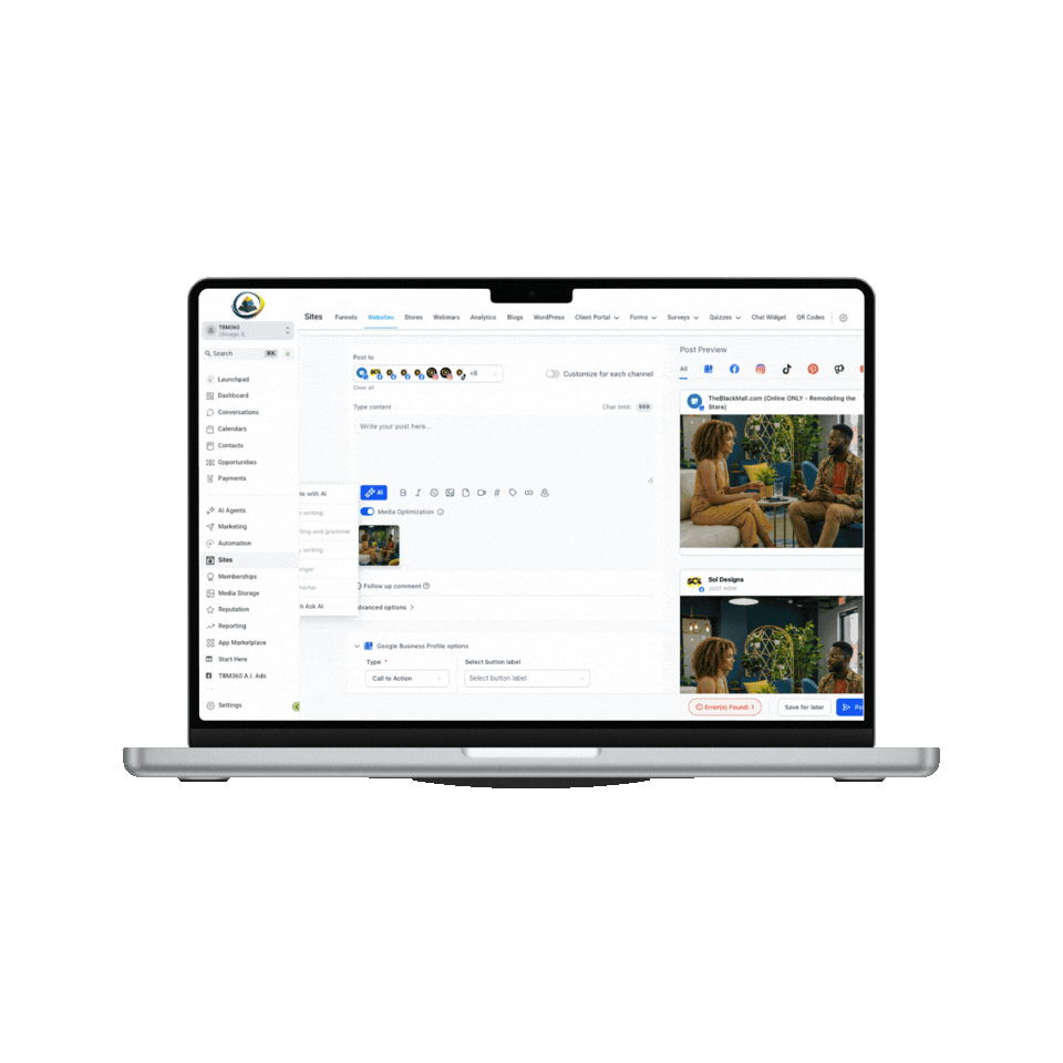 Save time and keep your brand active with ChicaGOHighLevel’s powerful social media scheduler.